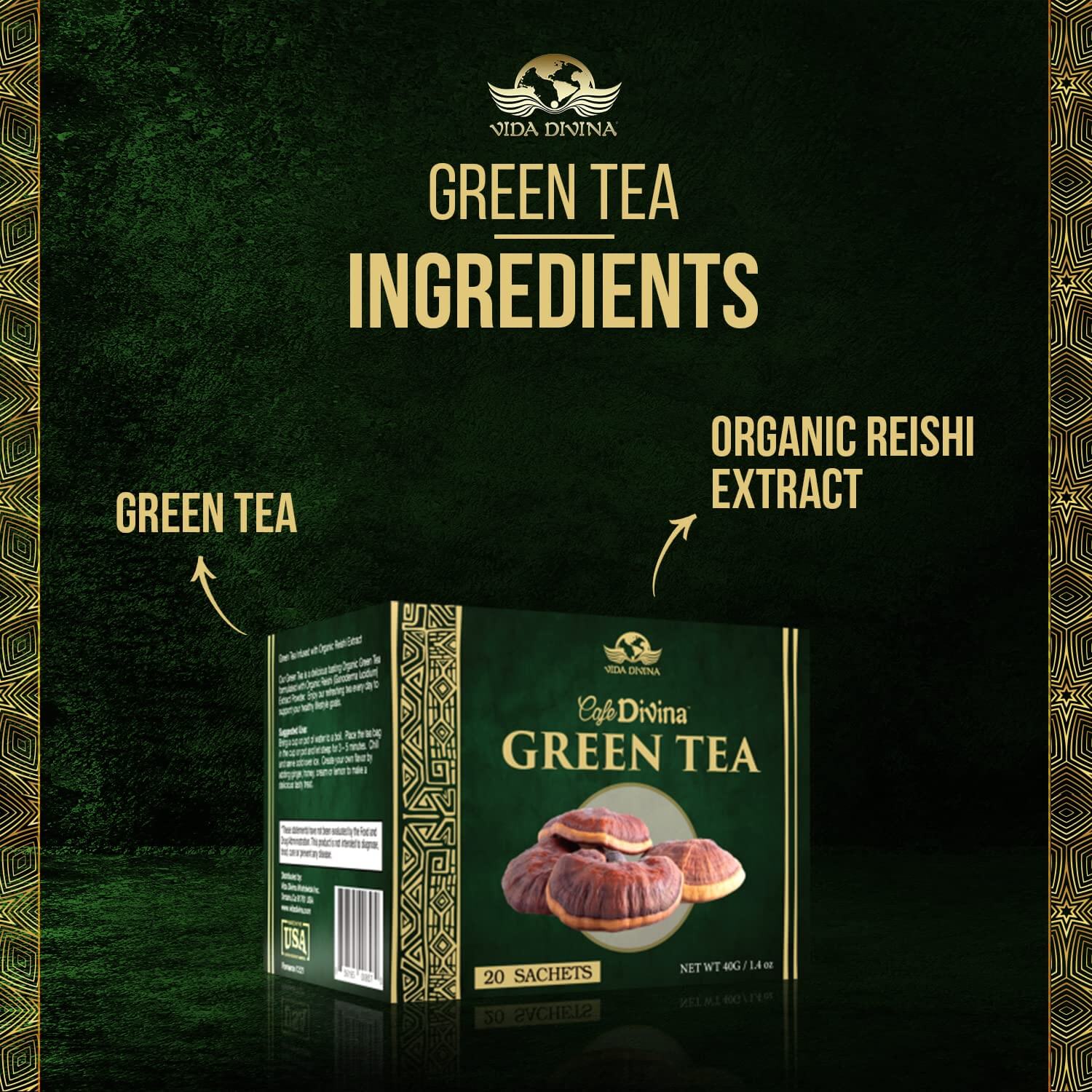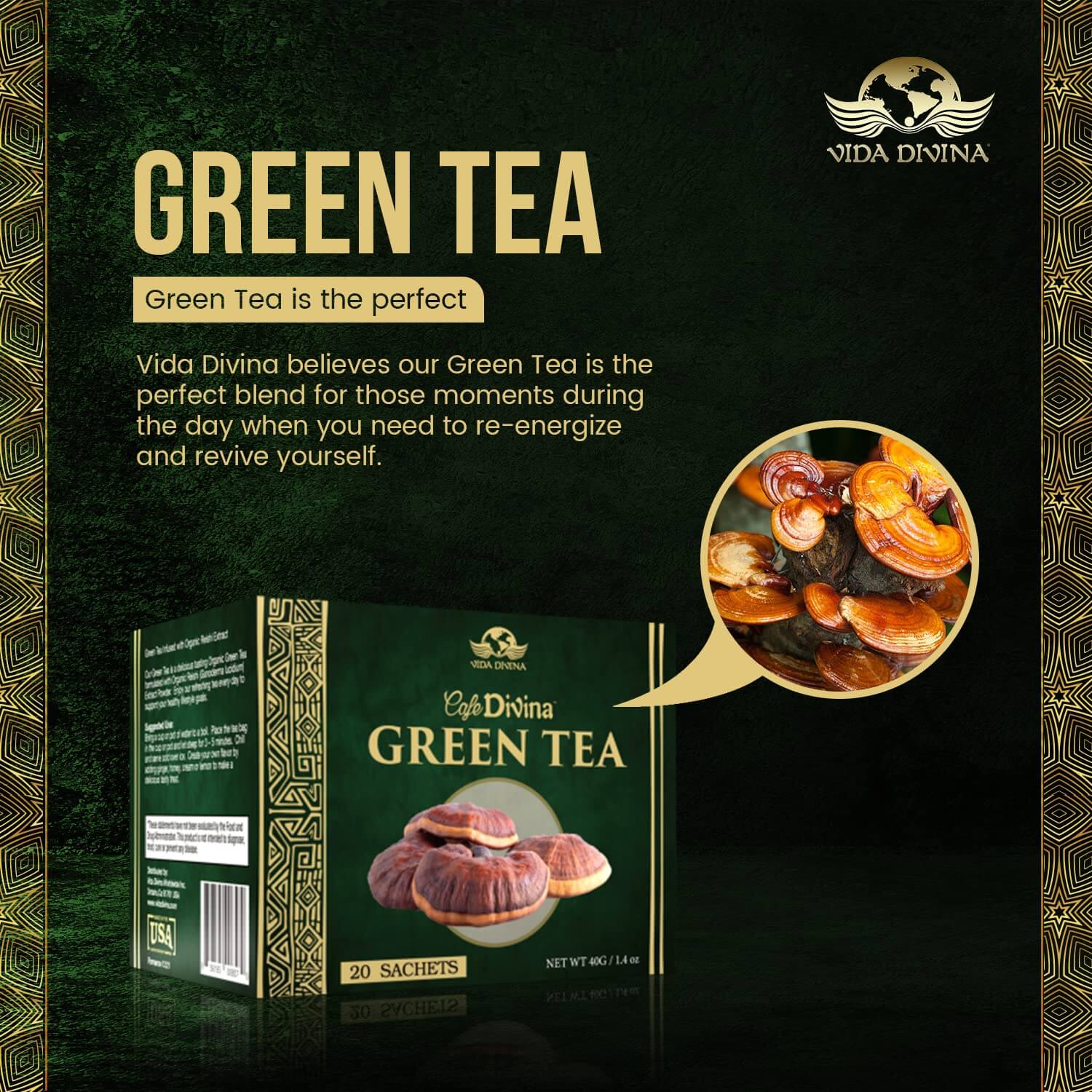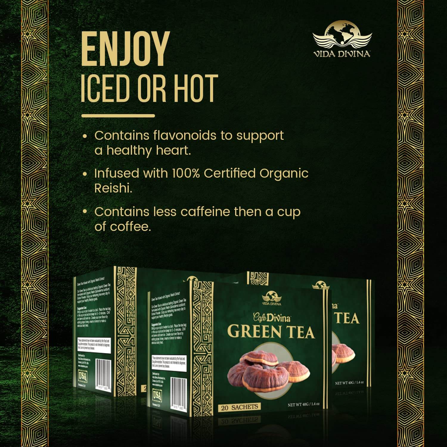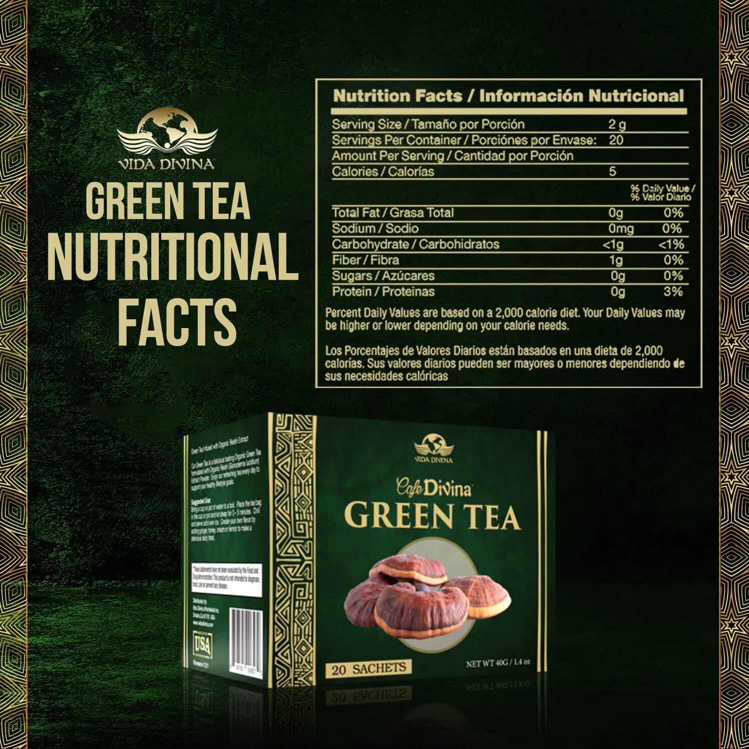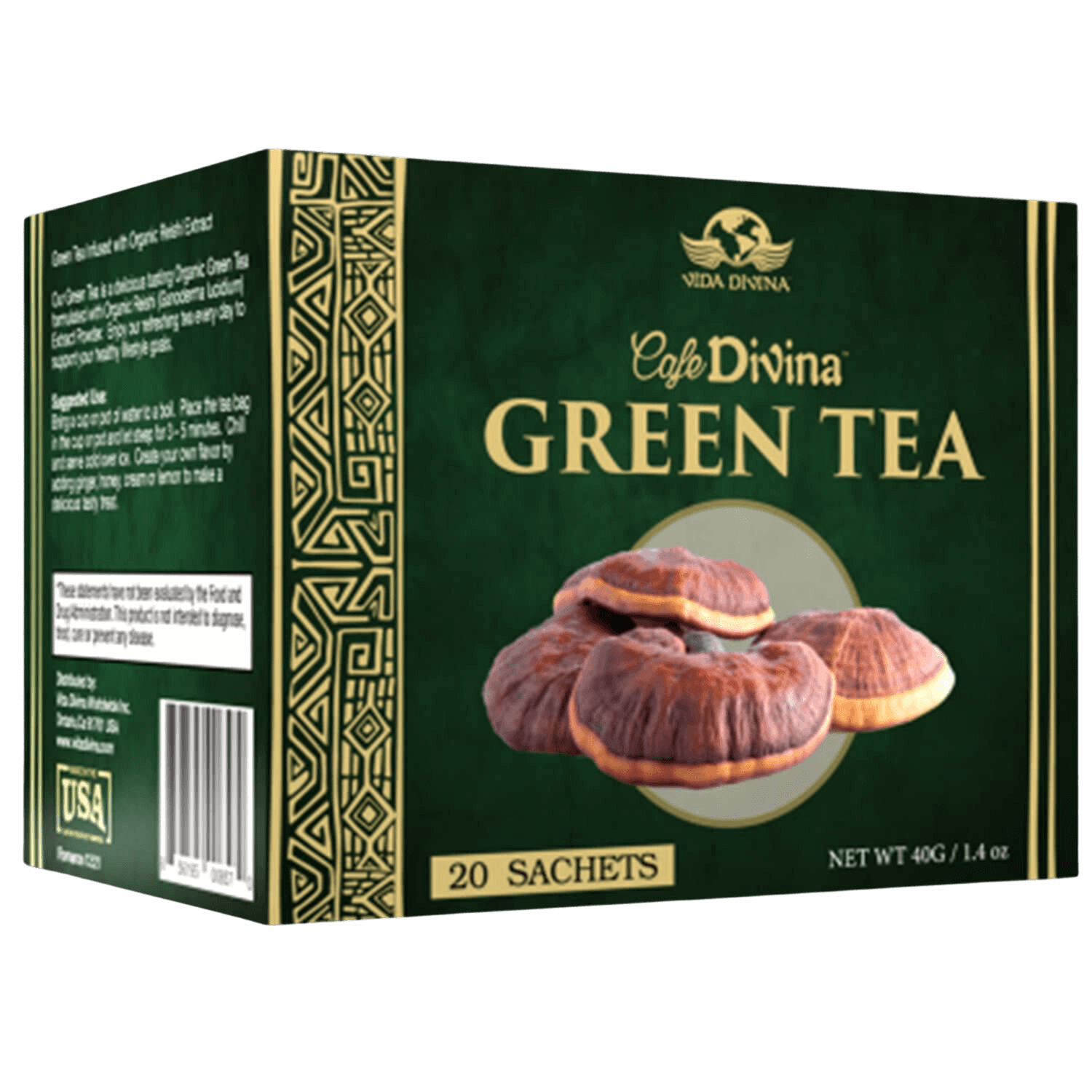 El té verde Vida Divina Café Divina es famoso por sus increíbles y refrescantes beneficios para la salud. Cree su propio sabor agregando jengibre, miel o limón.