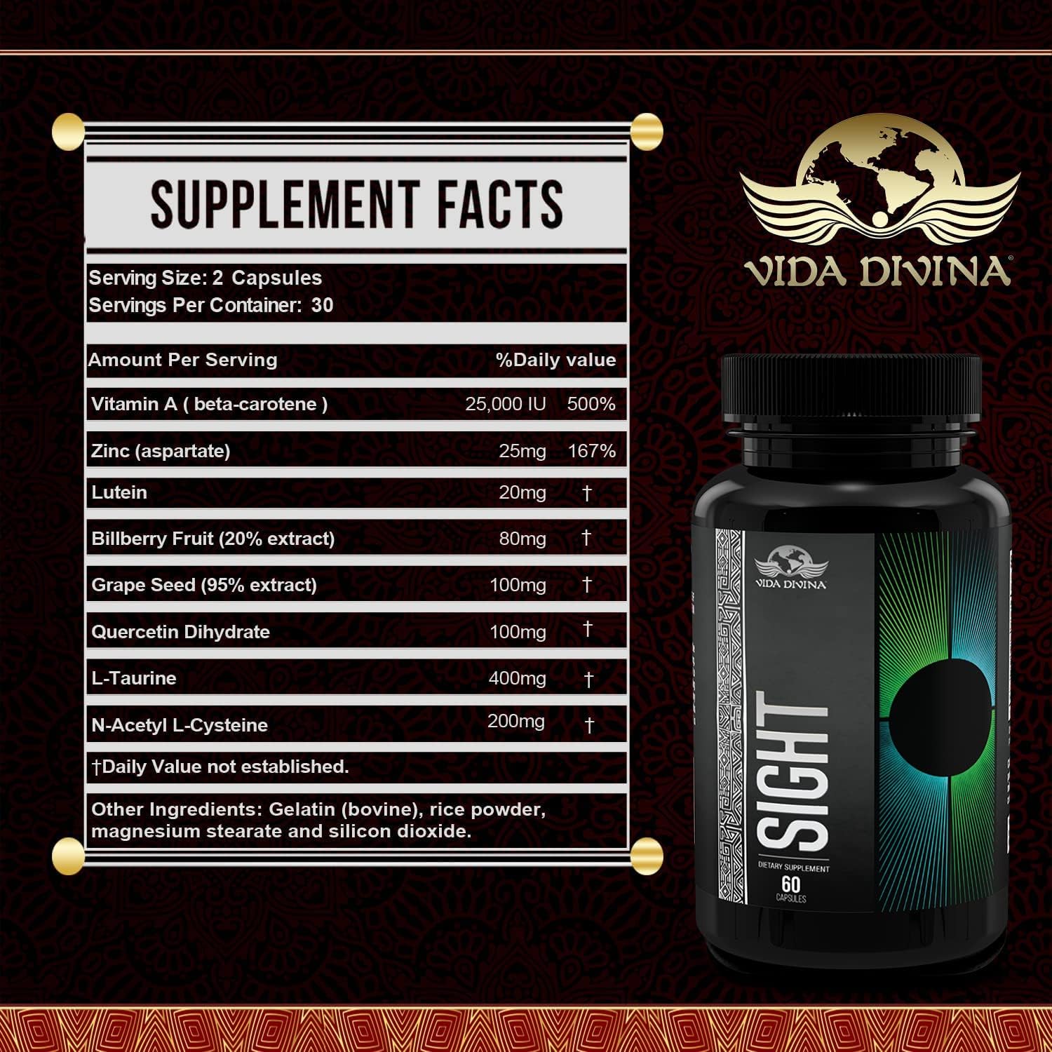 - Beneficios: El suplemento dietario Vida Divina Sight ayuda a proteger su vista e incluso puede mejorar su visión actual.